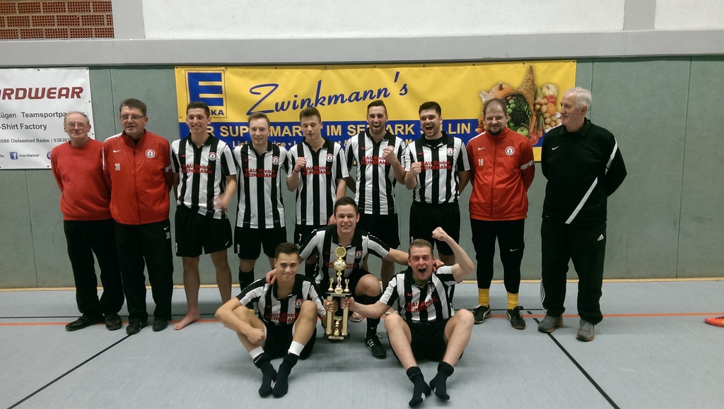 Bereits zum fünften Mal fand am vergangenen Samstag der Edeka-Zwinkmann-Cup statt. Beim hauseigenen Mitternachtsturnier des SV Blau-Weiß 50 Baabe sahen die zahlreichen Zuschauer in der Nordperdhalle Göhren ein bunt gemischtes Teilnehmerfeld, in dem sich der Titelverteidiger abermals durchsetzte und bereits zum vierten Mal in Folge jubeln durfte. Das Los führte in Gruppe A die Blau-Weißen aus Baabe (LK), ESV Lok Stralsund (KL), Empor Göhren (KL) sowie den SV Murchin/Rubkow (LK) zusammen. In Gruppe B trafen die Teams vom VfL Bergen I (LL), FC Pommern Stralsund II (LK), TSV Sagard (KOL) und FSV Garz (LK) aufeinander. Jedes Spiel dauerte 15 Minuten unter Leitung des Schiedsrichters Joachim Eschke, welcher eine tadellose Leistung zeigte.
