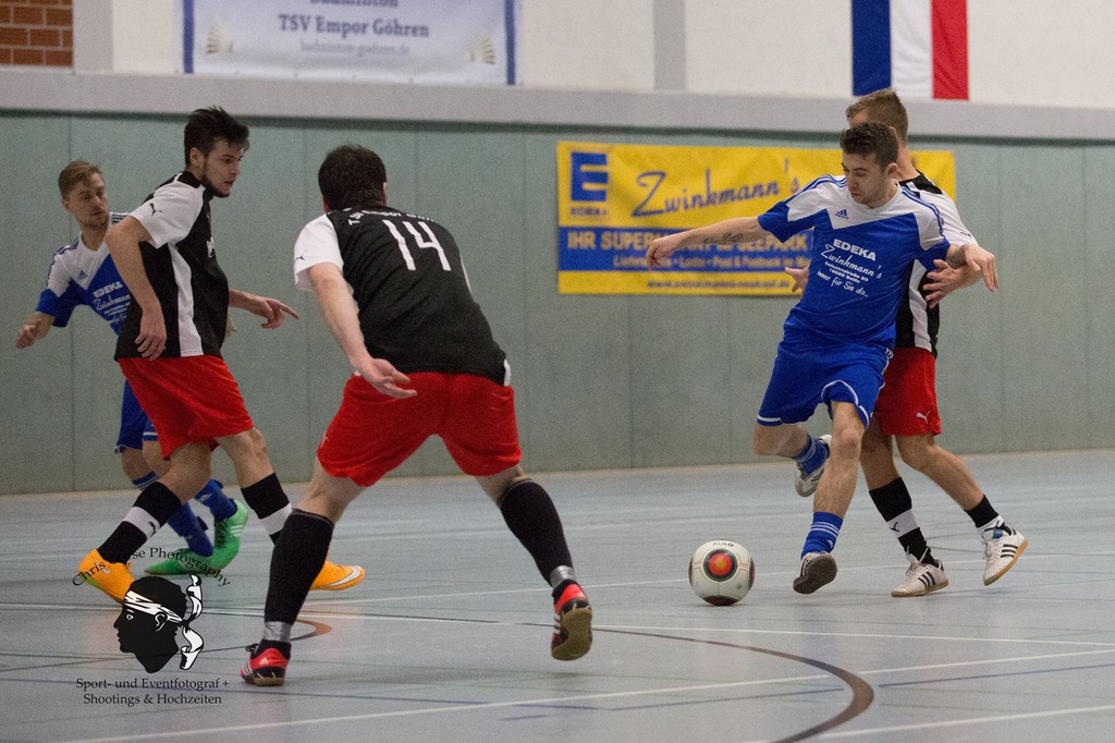 Zuvor setzten sich die Garzer im Spiel um Platz 5 aber noch klar mit 7:1 gegen Empor Sassnitz durch. Im kleinen Finale kam es ebenfalls zu einer Neuauflage zwischen Göhren und Uni Greifswald. Letztere sahen nach einer 3:1-Führung schon wie der sichere Sieger aus, doch Göhren mobilisierte nochmals alle Kräfte und kam zum Ausgleich. Als alle bereits auf ein 9-Meter-Schießen eingestellt waren führte ein Göhrener Stellungsfehler zwei Sekunden vor Schluss zum 4:3-Endstand für die HSG. Das mit Spannung erwartete Finale sollte dann ebenfalls halten was es versprach. Die Bergener, welche wie Phoenix aus der Asche im Endspiel standen, liefen einem frühen Rückstand hinterher (1.). Pommern stellte ähnlich wie im Vorrundenspiel geschickt die Räume zu und erkonterte sich eine 2:0-Führung (7.). Obwohl beide Treffer aus Bergener Sicht umstritten waren blieben sie ruhig und versuchten den Hebel umzulegen. Dies sollte im weiteren Verlauf dann auch gelingen. Nach dem Ausgleich zum 2:2 (11.) übernahmen sie kurz darauf selbst die Führung (13.) und machten in der letzten Minute schließlich den Sack zu. Damit schaffte der VfL Bergen die Titelverteidigung.