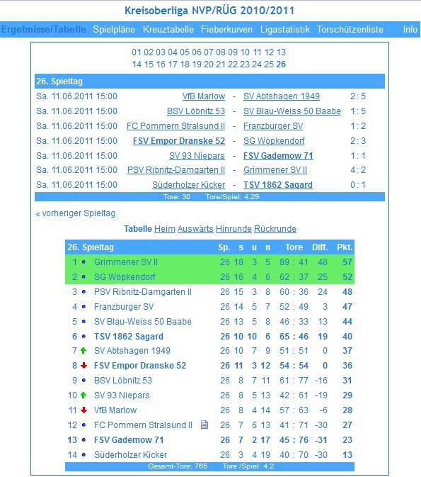 Aufstellung Baabe: N. Offermann, N. Kowalski, C. Wollschon, M. Peters, R.-P. Reinholz, S. Haß, A. Kowalski, A. Rast, C. Handschug (46. A. Wieser), T. Kus (84. T. Wanke), R. Schröter (63. M. Rogge)