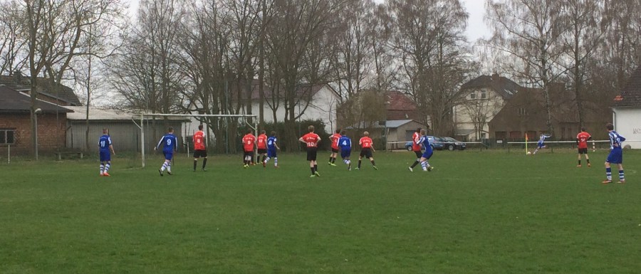 Das Spiel begann aber doch etwas verhalten, beide Teams tasteten sich erst einmal gegenseitig ab. In der 18. Spielminute erzielte Florian Fründt dann allerdings das 1:0 für die Gastgeber. Jetzt waren die Mönchguter die klar spielbestimmende Mannschaft und erspielten sich immer mehr Torchancen. Diese blieben aber bis kurz vor dem Halbzeitpfiff ungenutzt. In der 38 Minute erziehlte Moritz Lorenz das verdiente 2:0. Dies war dann auch der Pausenstand nach einer eher mäßigen ersten Halbzeit.